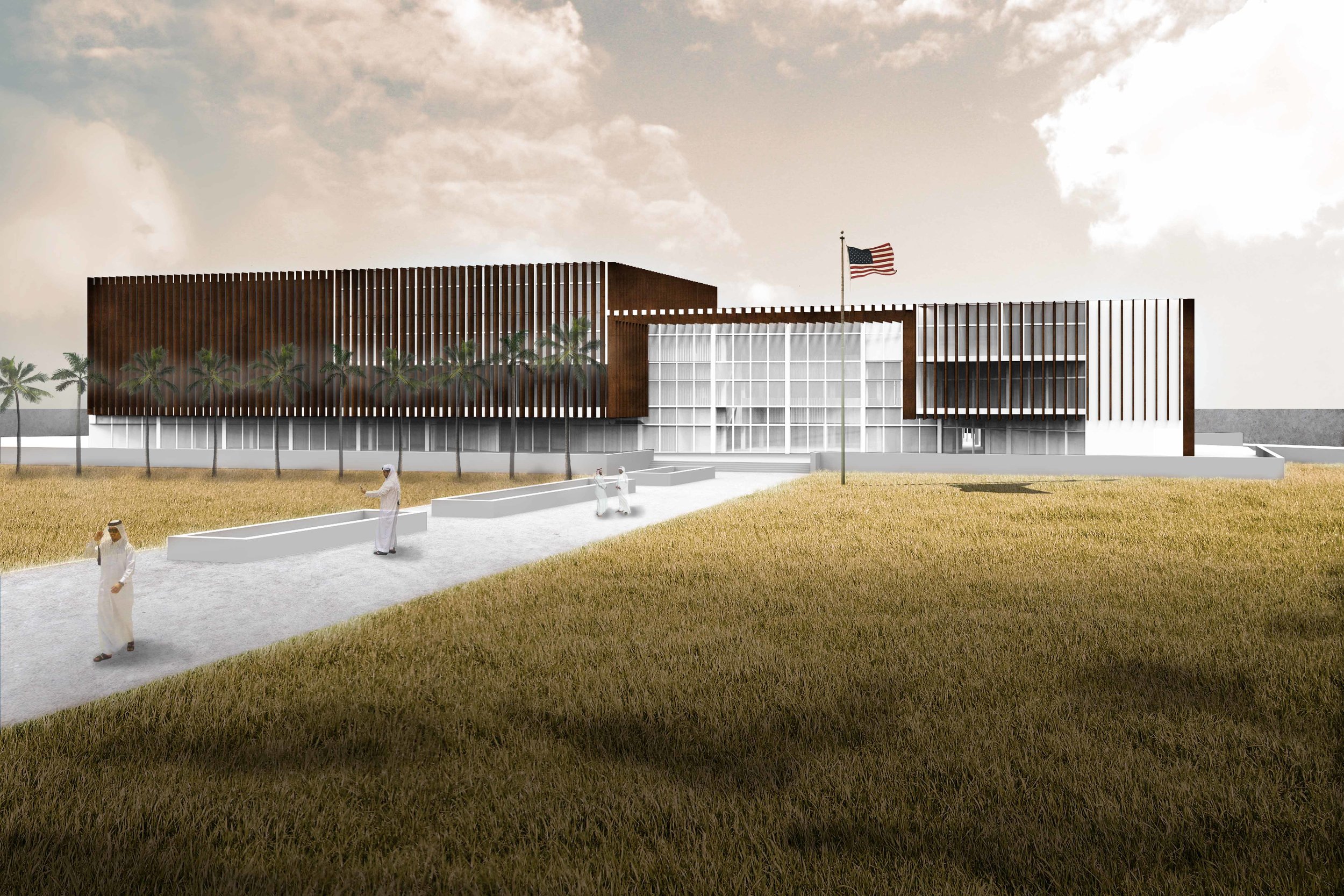 The U.S. Embassy in Riyadh, Saudi Arabia, was a project in collaboration with the U.S. Department of State known as Diplomacy Lab. Students were challenged to design an embassy while also creating an urban complex, implementing an extensive program, and abiding by strict security limitations.